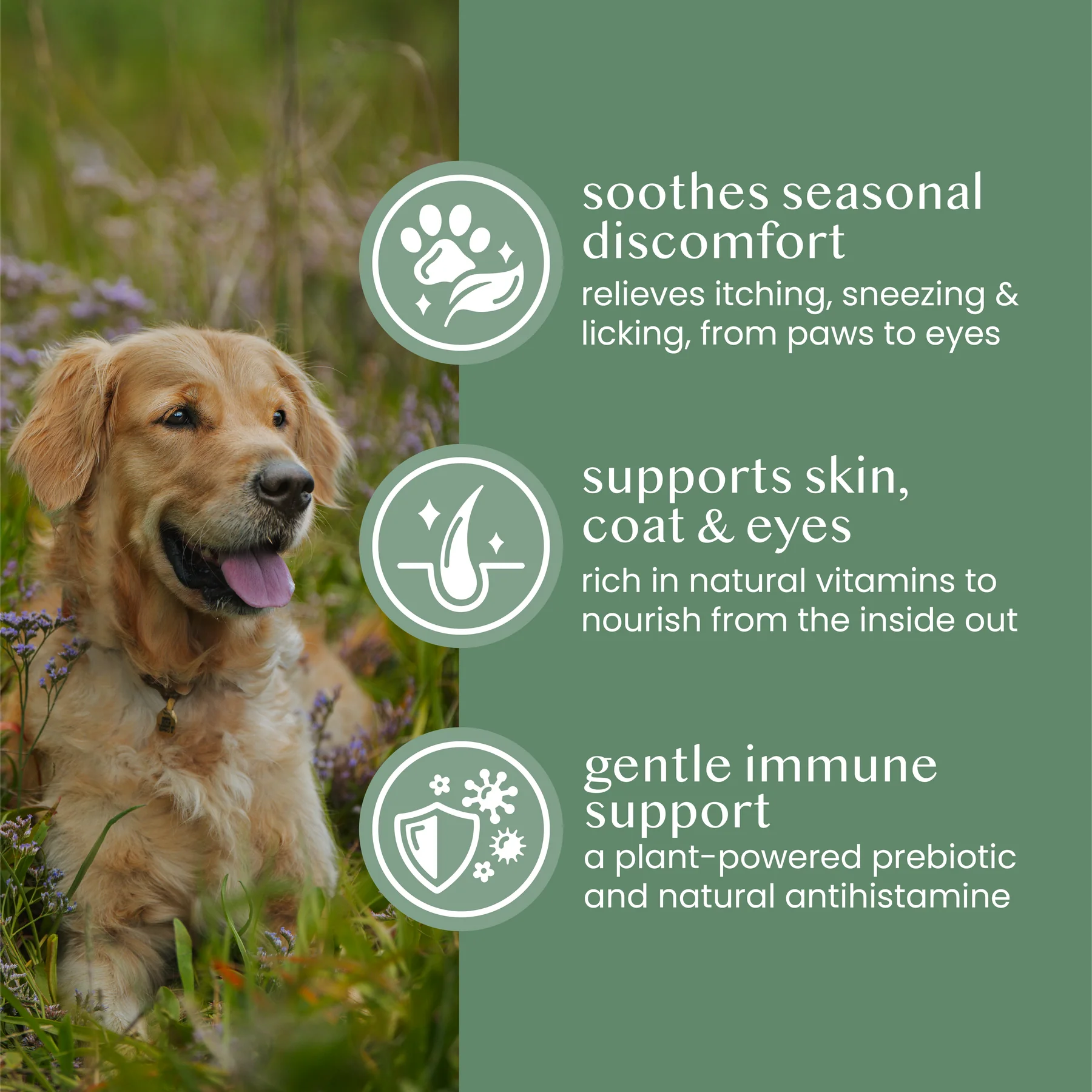 - soothes itching, licking & sneezing – naturally