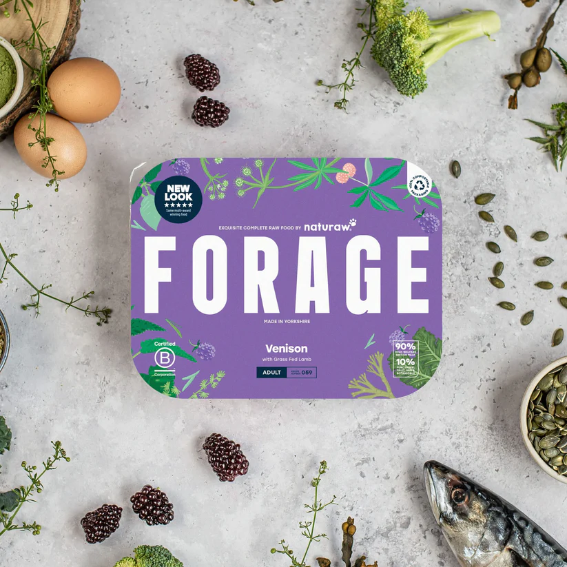Exceptional complete raw food crafted from the finest whole food ingredients. An exquisite recipe of British venison, with British lamb and our beautiful Forage blend (see below for details). Expertly minced coarsely to retain texture. 100% plastic-free packaging.
